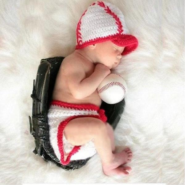 Amazon ベビー コスチューム 寝相アート ハロウィン 野球 ユニフォーム ベースボール ベビー服 記念撮影 毛糸 ハンドメイド コスチューム ディズニー 写真撮影用 赤ちゃん 衣装 誕生記念 赤ちゃん服 仮装 ベビーニット帽 コスプレ 着ぐるみ 出産祝い キッズ